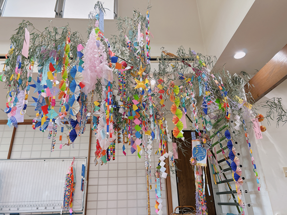 皆さんには事前に折り紙で七夕飾りを作ったり、短冊に願い事を書いていただきました。