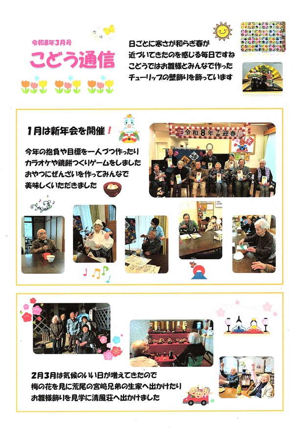 こどう通信3月号では、1月、2月、3月に行ったレクリエーションの様子等を紹介しています。